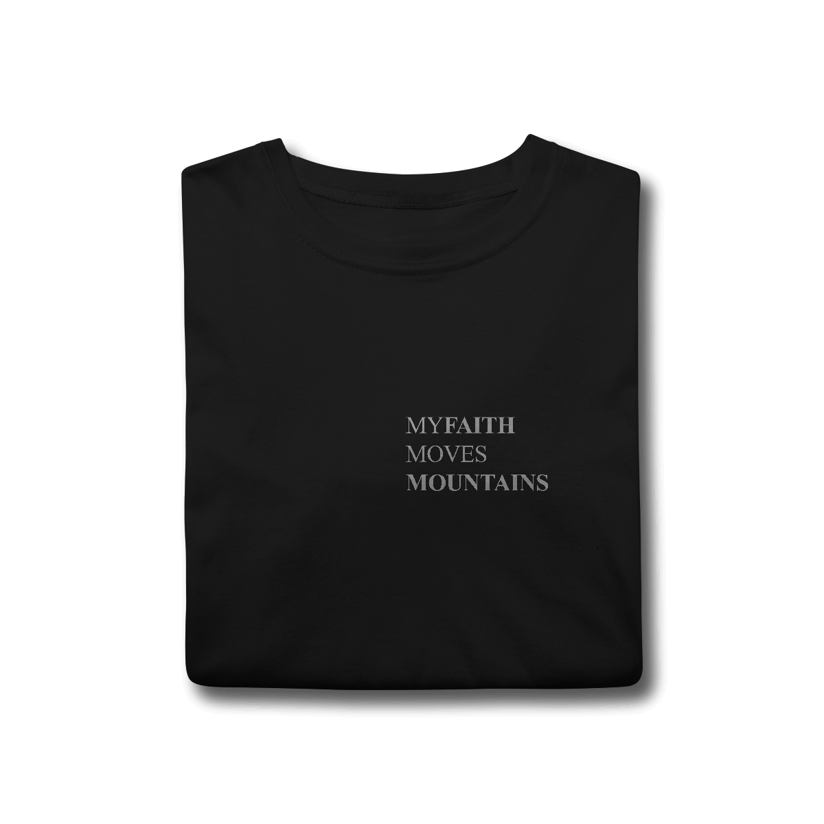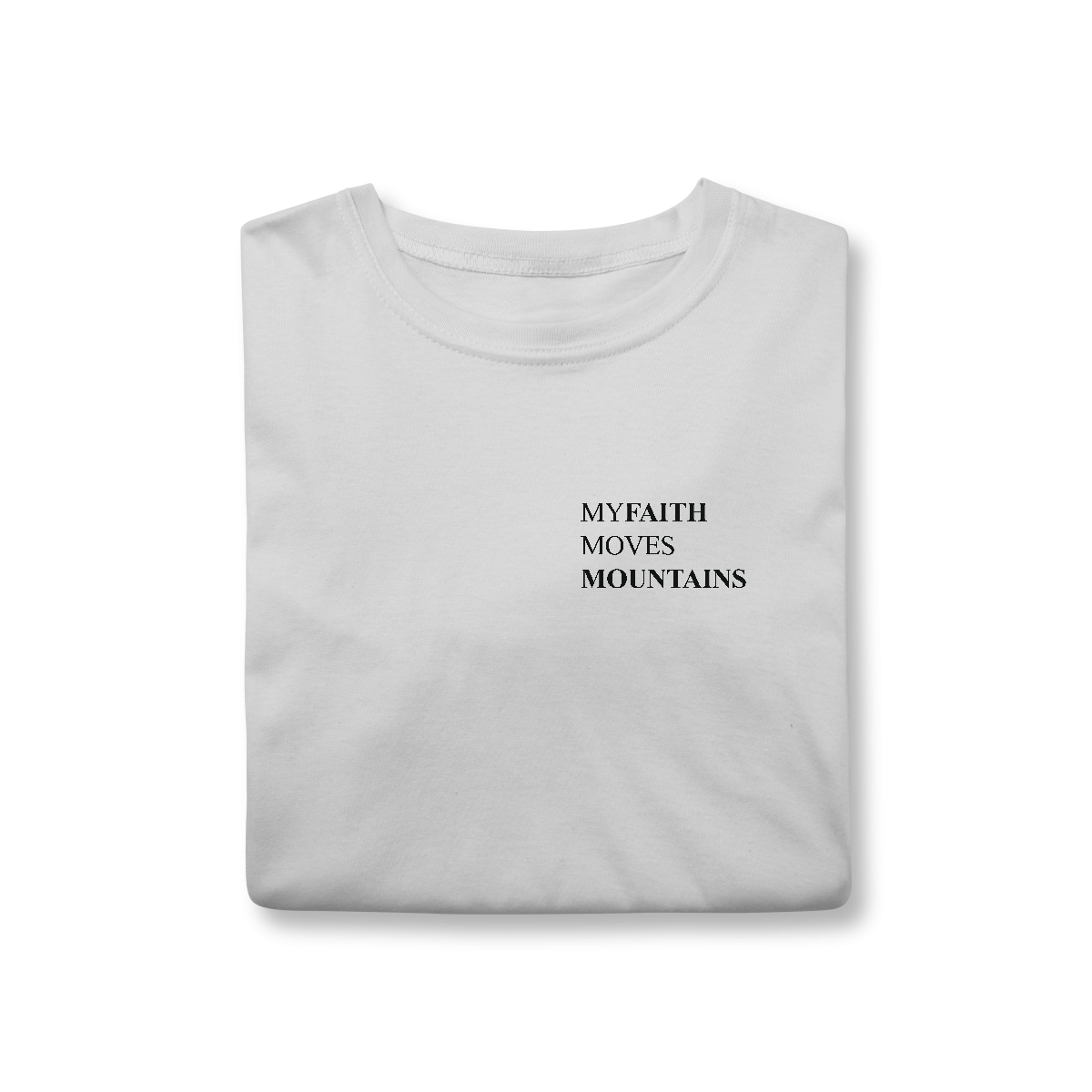 Uma camiseta atemporal e com uma mensagem impactante. Você já ouviu falar que a fé é capaz de tudo, né? Essa camiseta veio para afirmar ainda mais que a SUA fé pode mover montanhas sim!